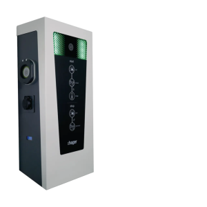 La borne de recharge witty park en acier inoydable peint IP54 IK10 est équipée de deux prises T2S et deux prises TE, d'une puissance maximale de 2x22kW (2x32A) avec un contrôle d'accés par RFID et une communication OCPP en ethernet (deux ports). Elle peut être connectée avec la télé-information client permettant la gestion des deux points de recharge. La programmation de la borne de recharge s'éffectue sur une page web.