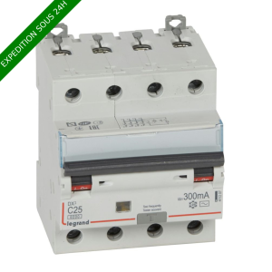 Intensité nominale 25A - Sensibilité 300mA - 4 modules