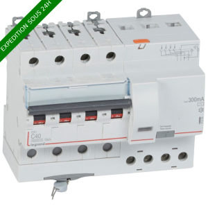 Disjoncteur différentiel monobloc DX³ tétrapolaire 400V~ pouvoir de coupure : - 6000A selon la norme NF EN 60898-1 pour applications domestiques- 10kA selon la norme EN 60947-2 Protection des départs : arrivée haute et sortie basse par bornes à vis - Type AC : détecte les défauts à composantes alternative Intensité nominale 32A - Sensibilité 300mA - 4 modules Dx³ En réussissant l'alliance performante entre pouvoir de coupure élevé, forte intensité nominale et faible encombrement, les disjoncteurs modulaires DX³ répondent parfaitement aux contraintes de sélectivité et de gain de place, tout en assurant une protection optimale des personnes et des biens définie par la norme NF C 15-100. Ils permettent d'éviter la mise hors service de toute l'installation en cas de défaut et de renforcer le pouvoir de coupure de la protection aval. Ils peuvent être installés dans des chantiers résidentiels, petit tertiaire et grand tertiaire avec des pouvoirs de coupure de 6 kA à 50 kA. Le disjoncteur DX³ STOP ARC est une nouveauté Legrand, qui limite le risque d'incendie causé par des défauts d'arc électrique. La gamme DX³ est également composée de disjoncteurs différentiels, d'interrupteurs différentiels ainsi que d'auxiliaires qui assurent le déclenchement à distance des disjoncteurs, et de blocs différentiels adaptables.